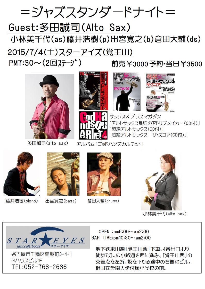 | 7/27(Wed) | Michiyo4 Hideki Kawano(g)Go Shimada(b)Kohta Hayashi(ds) | STAR EYES(Kakuohzan) |