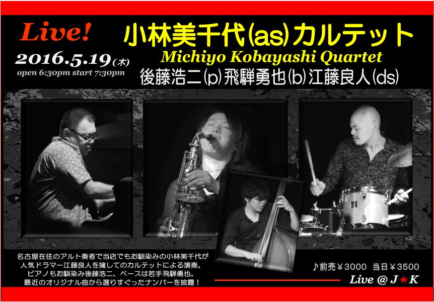 Michiyo Quintet feat.Keiji Matsushima(tp) 3days tour Yuuki Kondo(Takuya Sakazaki(b)Daisuke Kurata(ds) |